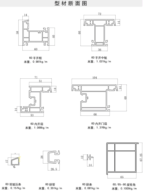 1、60系列主型材采用三腔結(jié)構(gòu),設(shè)有獨(dú)立排水腔、增強(qiáng)型鋼腔、保溫隔音腔,使熱傳導(dǎo)K值在2.0以下。