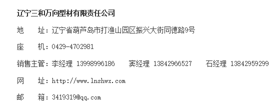 Copyright © 2007-2021 lnshwx.com 版權(quán)所有:遼寧三和萬向型材有限責(zé)任公司 地 址:遼寧省葫蘆島市打漁山園區(qū)振興大街同德路9號(hào) 遼ICP備13003696號(hào)-2 遼公網(wǎng)安備 21140202000090號(hào) 技術(shù)支持:葫蘆島企業(yè)網(wǎng)站制作
